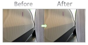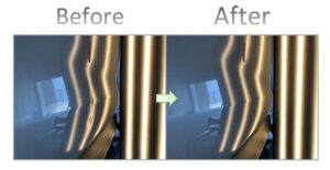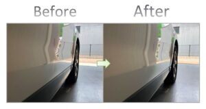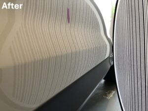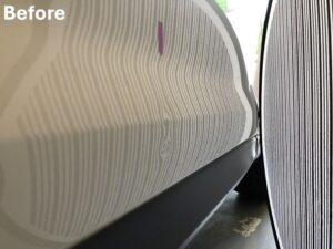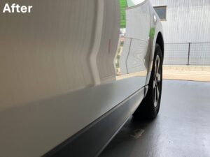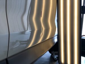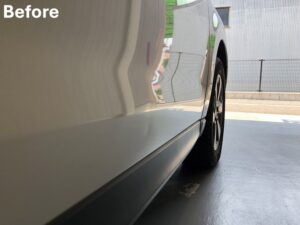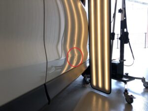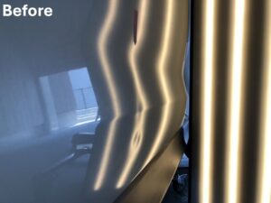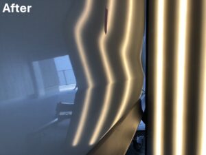 このような凹みはデントリペアが最良の修理方法になりますので、綺麗に修復させていただきます。