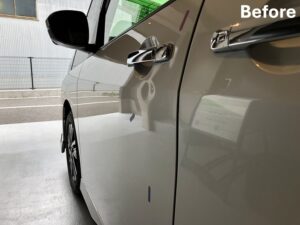 今回のご依頼は『日産・セレナ』助手席側ドア凹み凹みのデントリペアです。