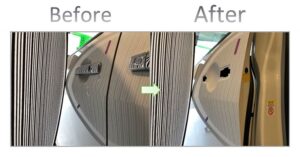 かなり大きい凹みでしたが、綺麗に直せると判断し施工いたしました。