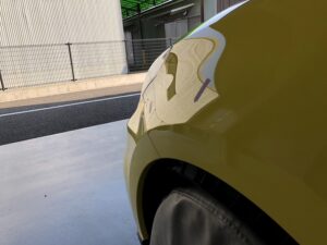 今回のご依頼は『スズキ・スイフトスポーツ』左側フロントフェンダー凹みのデントリペアです。