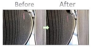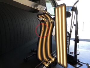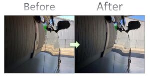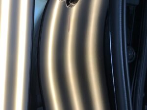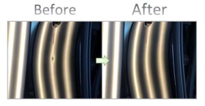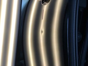 このような凹みはデントリペアが最良の修理方法になりますので、綺麗に修復させていただきます。