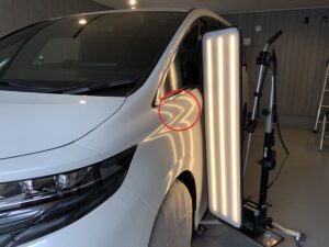今回のご依頼は『トヨタ・アルファード』左フロントフェンダー凹みのデントリペアです。