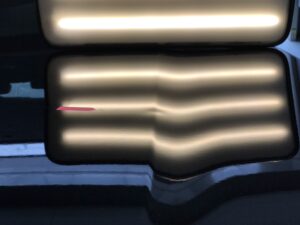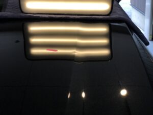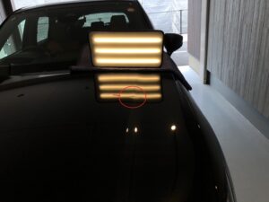 【施工写真①・専用ライト】 デントリペア専用のライトで光を当てて確認します。