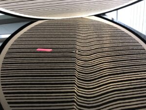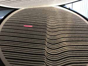 【施工写真②・ラインあり】 縞模様のリフレクターボードで確認します。