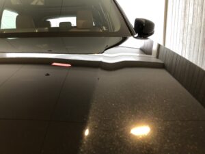 ヘコミはボンネットの助手席寄り、デザインの要となるプレスライン上にできていました。