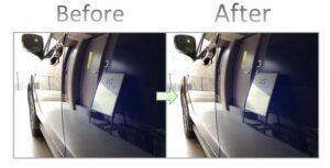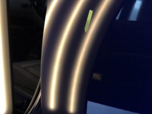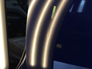 原因はドアパンチ被害とのことで、光の反射が強いカラーなので、少しの歪みでも非常に目立ってしまいます。