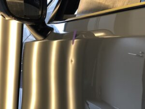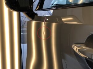 原因はドアパンチ被害とのことで、再塗装を行わずに修理できないかとご相談いただきました。